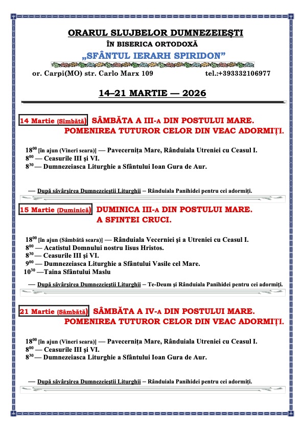 Comunitatea ortodoxă din orașul Carpi, provincia Modena, Italia